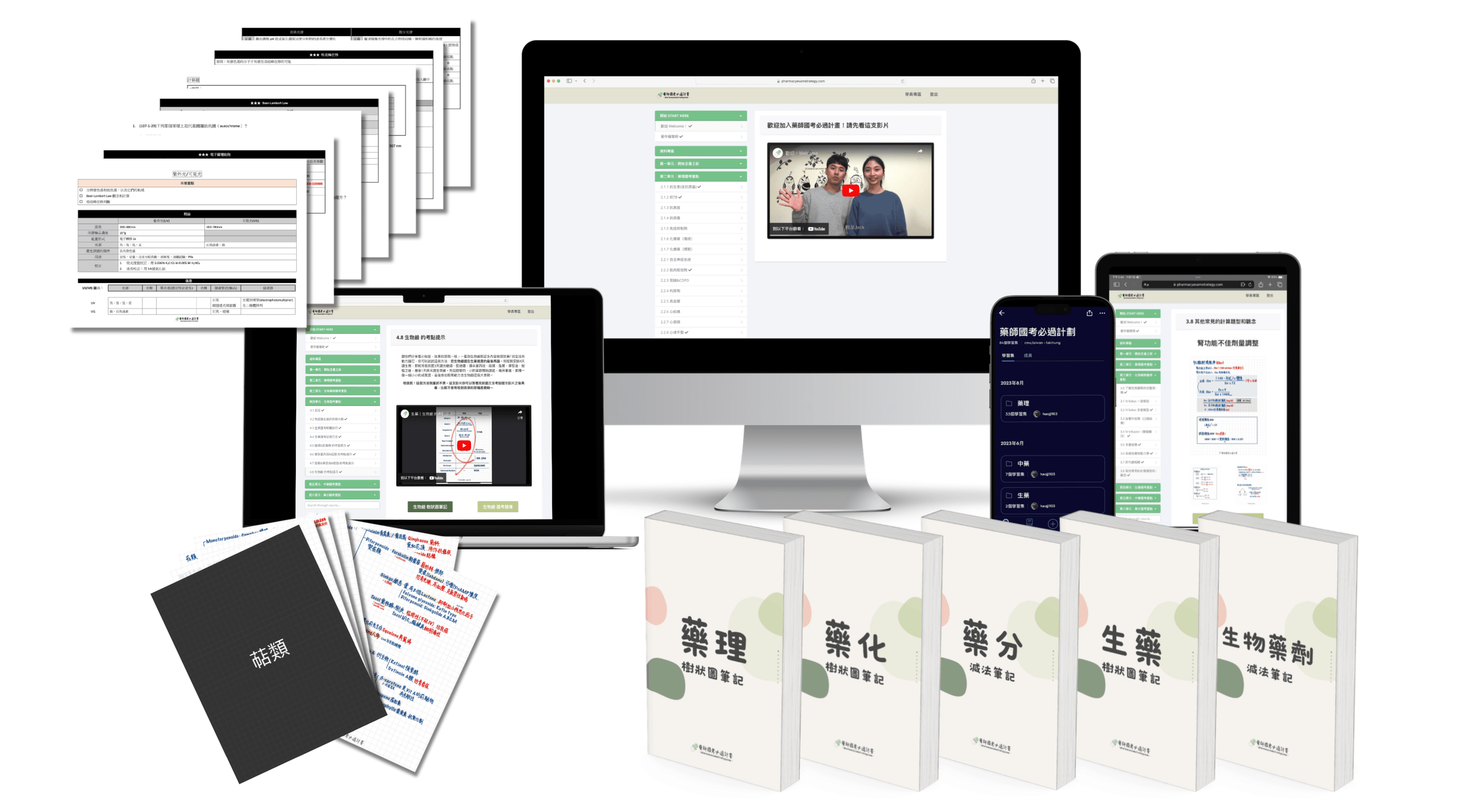 藥分課程以及藥物分析減法筆記包含傳統分析(僅旋光度與折光率、非水滴定法、費氏水分測定法)、光譜分析、色層分析。藥化課程以及藥化樹狀圖懶人包記憶筆記僅包含免費教學影片中提到的十五個重點章節。